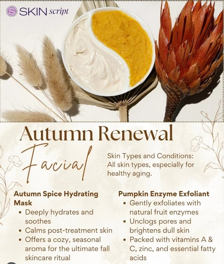 Enjoy 20% off our Pumpkin Facial - the perfect seasonal glow-up! 🎃